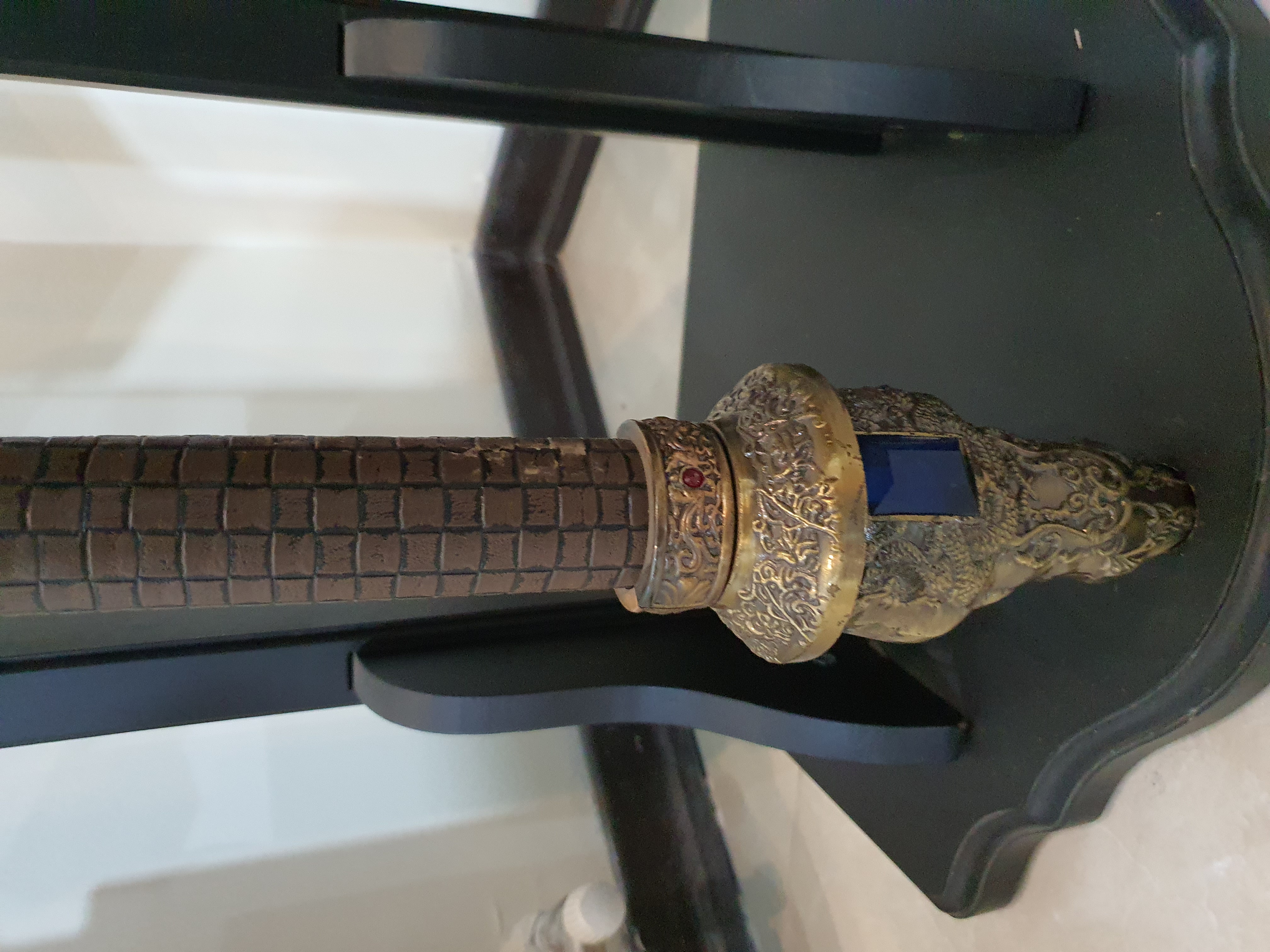 متاسفانه این کالا در حال حاضر موجود نیست. میتوانید از طریق لیست بالای صفحه، از محصولات مشابه این کالا دیدن نمایید.زوبین غول پیکر به ارتفاع ۲ متر با تیغه فولادی با دسته تزیین شده با سنگهای قیمتی